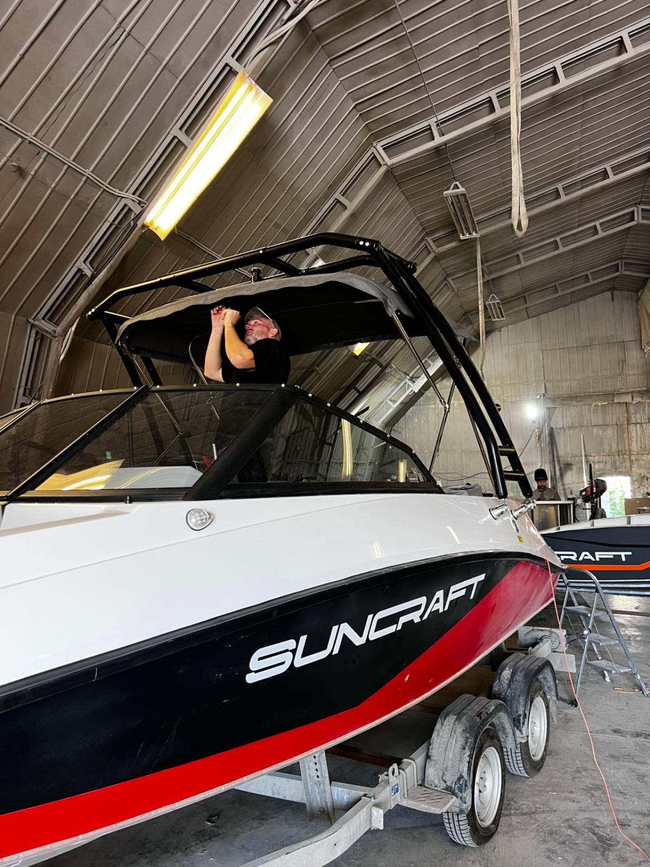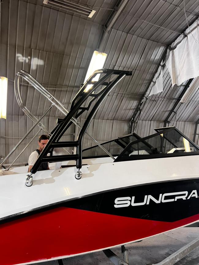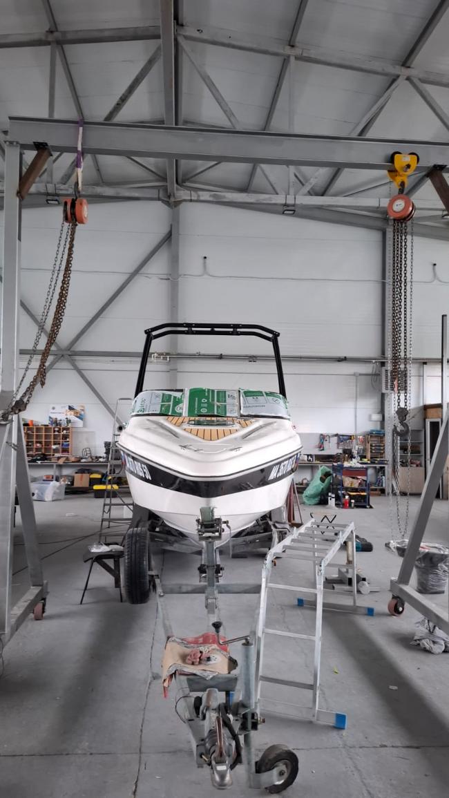 Груз в пути к 10 февраля ждем Цвет черный Цена за башню без навесного оборудования Тент солнечный - плюс 60000 руб к цене Современный вейкбордический тауэр - для вейкбордистов любой комплекции и для катеров длиной от 4.5 метра Тауэр похож на модели фирмы MONSTER Tower Этот тауэр складывается в течении 3-х минут, подходит для всех катеров с шириной борта от 1.7 м до 2.6 метра . PT 26 изготовлен из алюминиевых труб Ду 57 мм Фирменное заводское производство Не порошковая покраска ! Это заводское химическое анодирование Комплект включает все необходимые крепежи, инструмент, внутреннюю пластину усиления борта . При монтаже на пластиковые катера - желательно усилить место крепления дополнительной пластиной или проклеить изнутри стеклотканью как на видео. Опция к этой башне поворотные держатели для вейков Продажа возможна по безналичному расчету (без НДС) +7 % к цене .