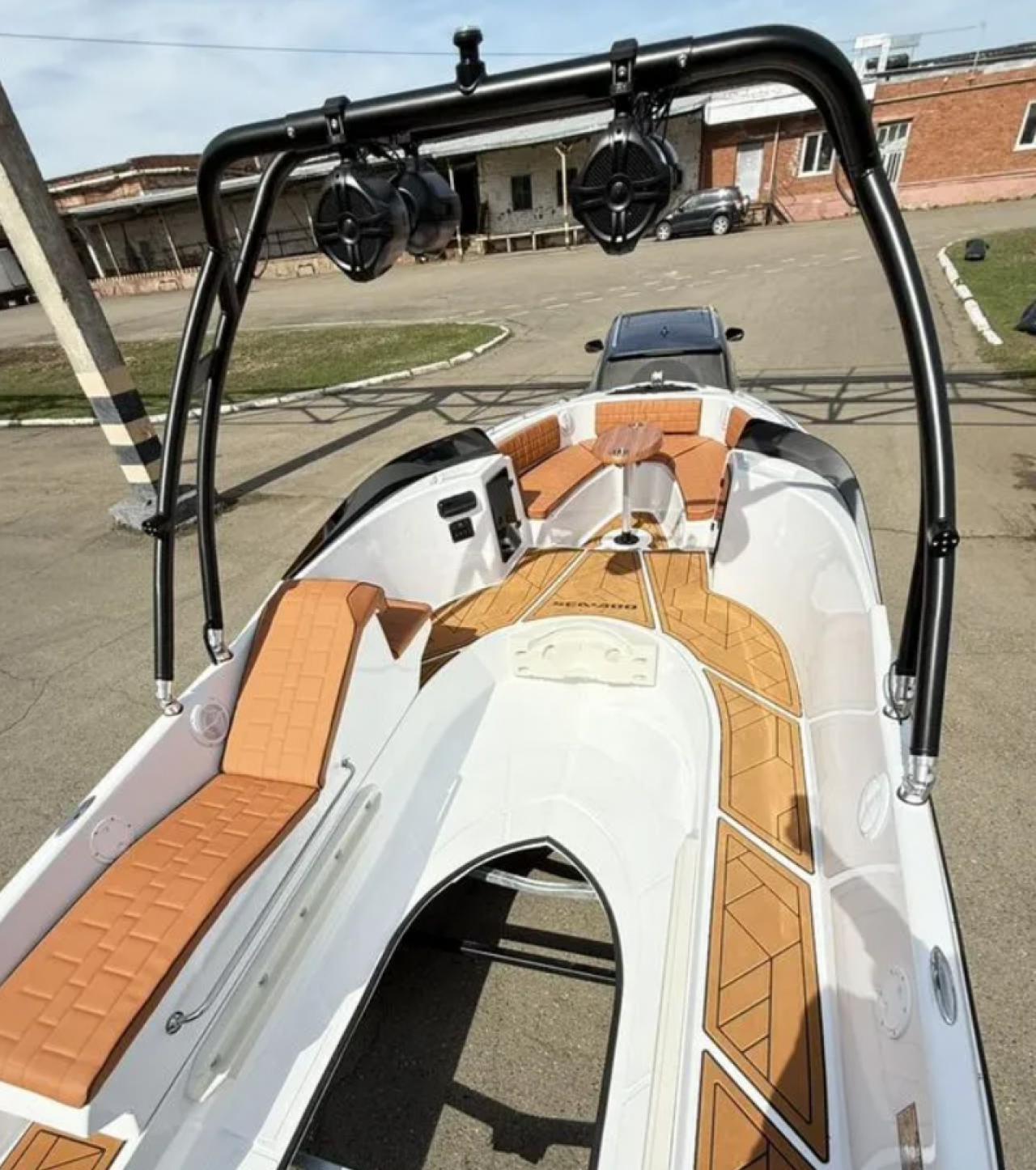 Цвет черный Цена за башню без навесного оборудования Тент солнечный - плюс 48000 - 60000 руб к цене Современный вейкбордический тауэр - для вейкбордистов любой комплекции и для катеров длиной от 4.5 метра Тауэр похож на модели фирмы MONSTER Tower Этот тауэр складывается в течении 3-х минут, подходит для всех катеров с шириной борта от 1.7 м до 2.6 метра . PT 23 изготовлен из алюминиевых труб Ду 57 мм Материал труб алюминий. Это заводское химическое анодирование и полировка ! Комплект включает все необходимые крепежи, инструмент, внутреннюю пластину усиления борта . При монтаже на пластиковые катера - желательно усилить место крепления дополнительной пластиной или проклеить изнутри стеклотканью как на видео. Опция к этой башне поворотные держатели для вейков Продажа возможна по безналичному расчету (без НДС) +7 % к цене . Характеристики Вес 30 кг Размер коробки 1.45м*0,6м*0,25м. Ширина катера от 1.8-2.8 м Цвет металик Материал авиационный алюминий марки Т6061 труба Dy 57м